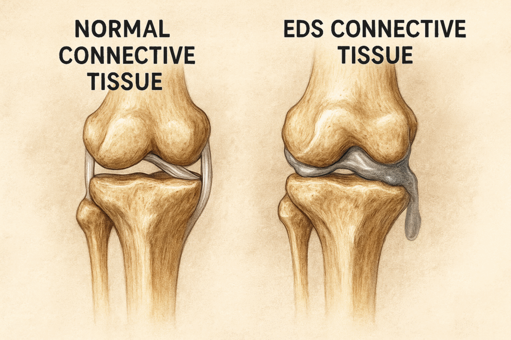 Now imagine the inside of our bodies working like that. When collagen is made incorrectly, it affects everything â joints, skin, organs, and ligaments. Thatâs why we deal with hypermobility, unstable joints, soft or stretchy skin, easy bruising, chronic pain, and all kinds of internal fragility issues.